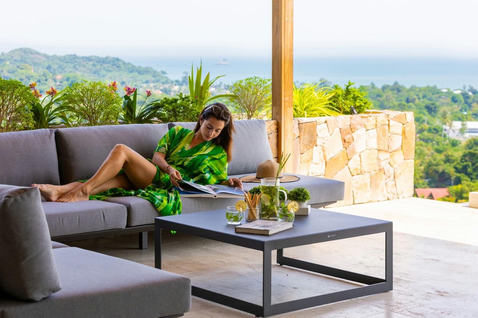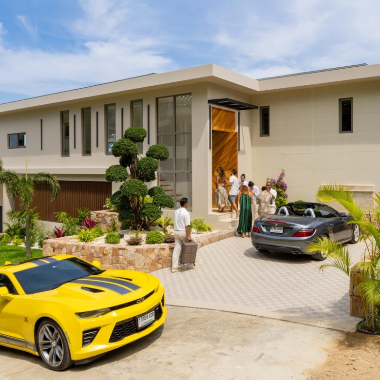 Built on a hillside above Plai Laem Bay, this 1000 m², 6-suite villa offers an unforgettable holiday experience, merging luxury, space, and tropical immersion